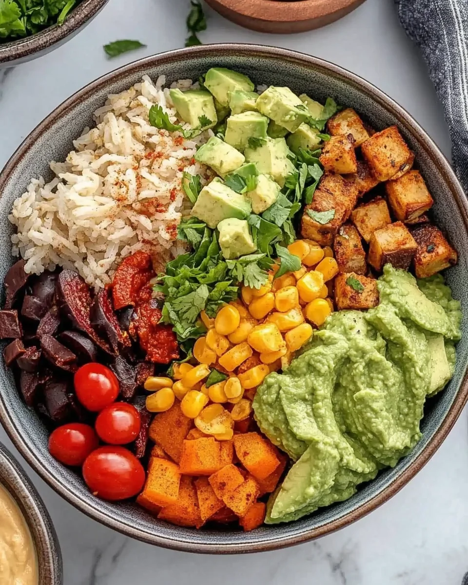 Diese herzhafte Bowl liefert eine gute Mischung aus komplexen Kohlenhydraten und pflanzlichem Eiweiß.